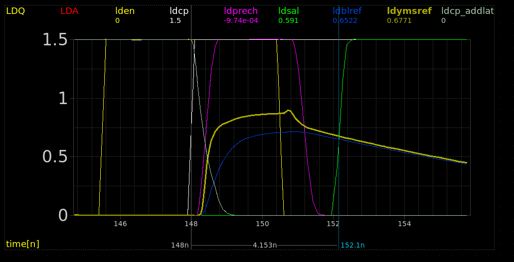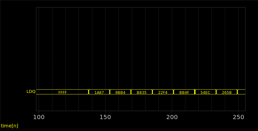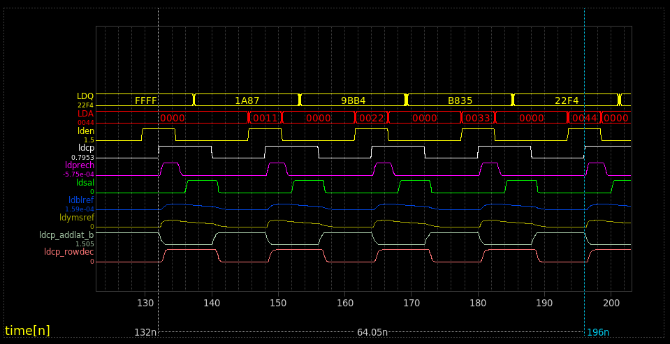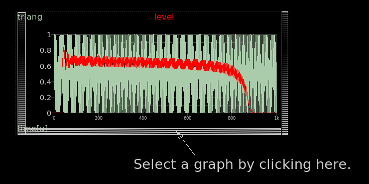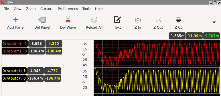 - Pressing the right mouse button in the graph area and dragging some distance in the X direction will zoom in the waveforms to that X range.