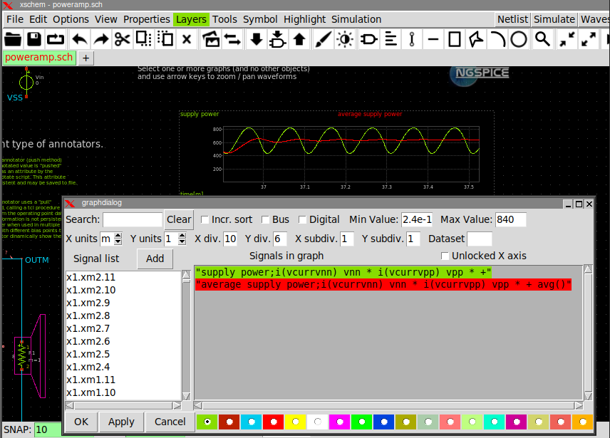 Using XSCHEM's internal graph functions