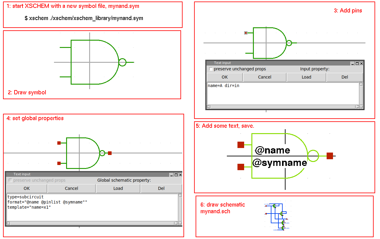 1. Start XSCHEM with a new symbol name (mynand.sym).