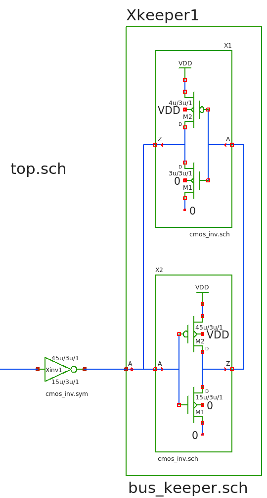 - It is possible to place a schematic instead of a symbol into a parent schematic